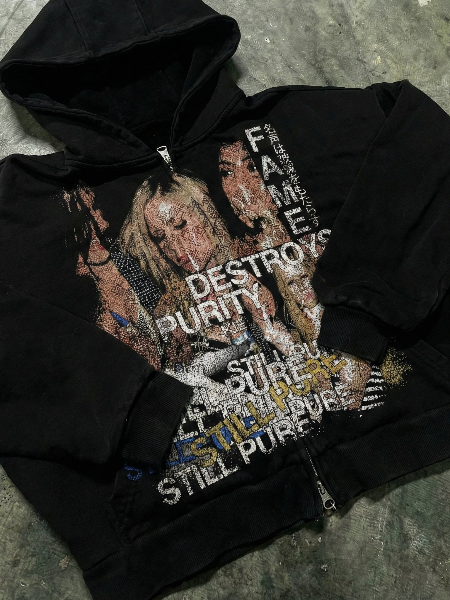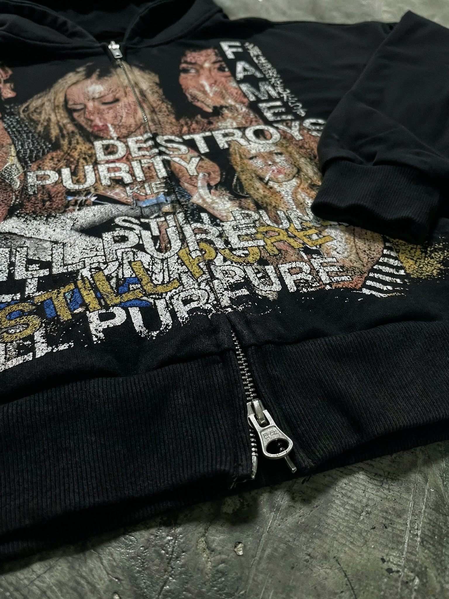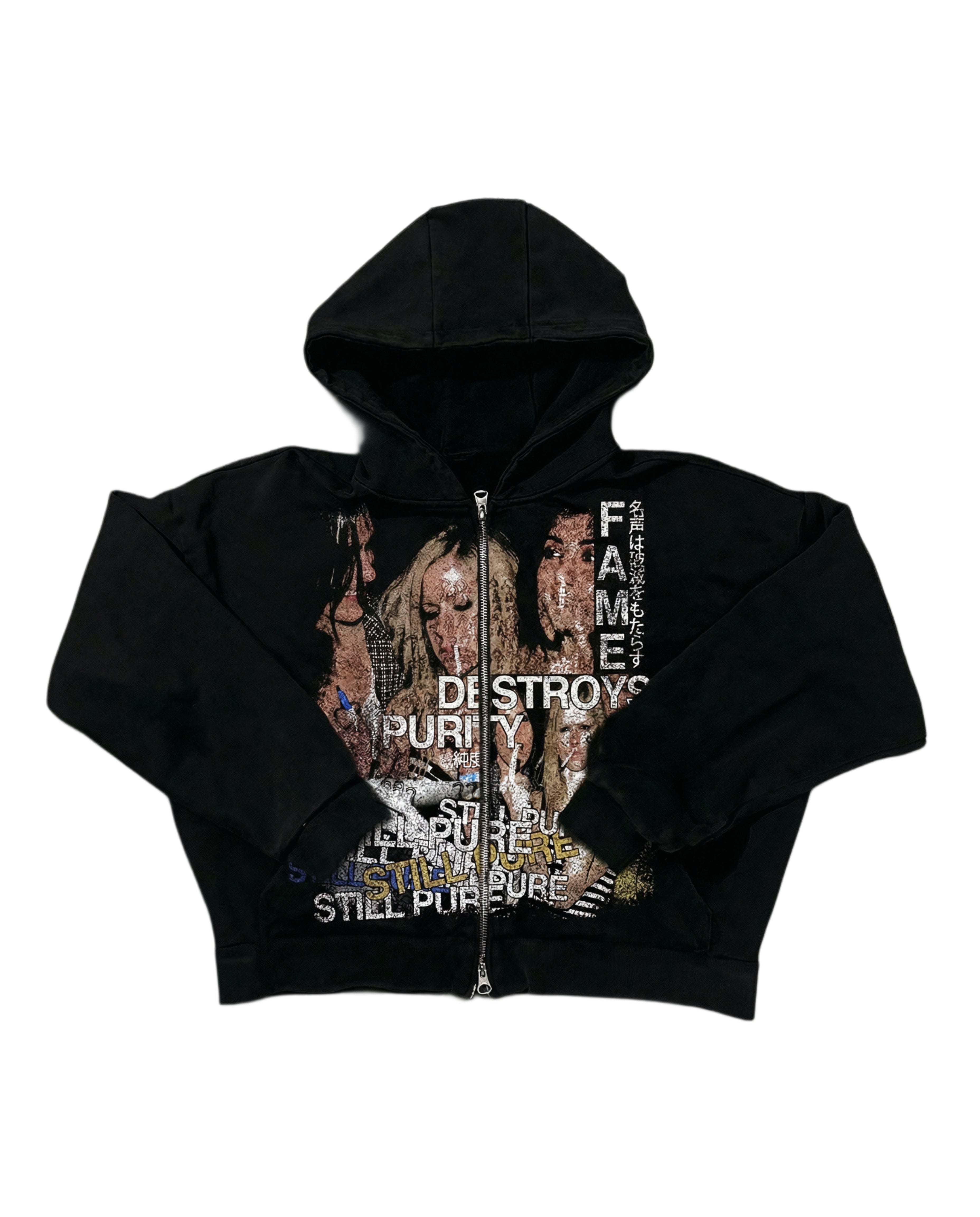 A heavyweight cropped zip-up built for a structured, modern silhouette. This garment is cut in our signature cropped fit, featuring a slightly cropped body, drop-shoulder construction, and a dual-zip front for adjustable styling and proportion.